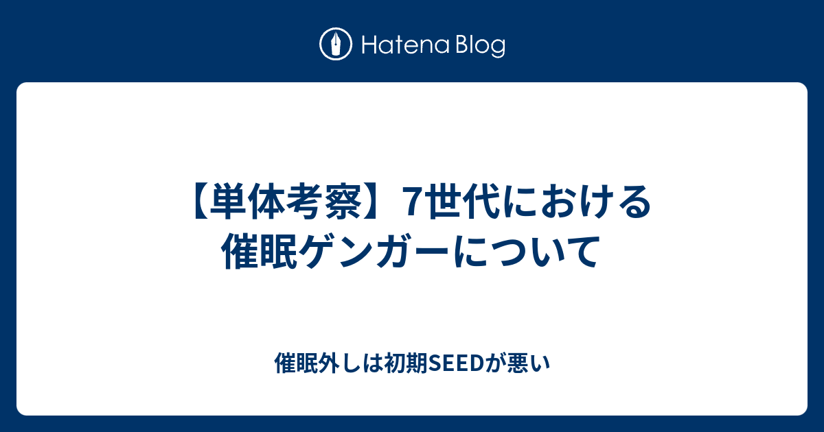 単体考察 7世代における催眠ゲンガーについて 催眠外しは初期seedが悪い